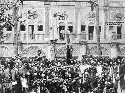 مراسم اعدام حبیب الله موقر السلطنه از هواداران محمد علی شاه - ۱۳۲۷ قمری (بیش از ۱۰۰ سال قبل)